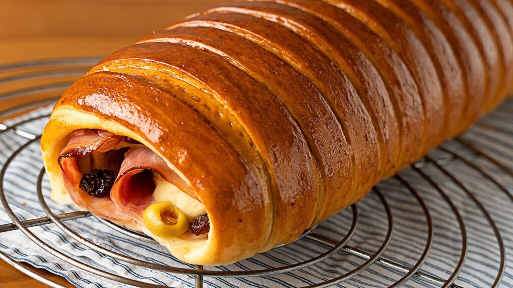El pan de jamón venezolano es uno de los platos más emblemáticos de la Navidad en Venezuela. Su mezcla perfecta entre masa suave, relleno salado y el toque dulce de las pasas lo convierten en un clásico que no puede faltar en la mesa navideña.